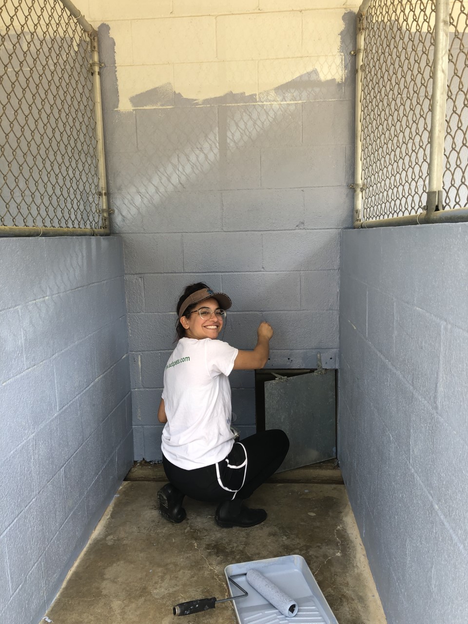 Our group arrived bright and early this morning with six dogs awaiting our arrival. Most were excited, jumping up and pressing their paws and noses through the chain link for a chance at love, affection and attention. Others nervously barked or hid at the sight of dozens of eager volunteers ready to step in to help.