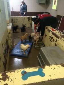 Inside any given kennel you’ll find a sopping wet dog or young puppy staring up at you with terror filled eyes. They’re afraid, and they should be. Most of them may not make it out. Whether from illness or euthanasia, for some of these pups this is death row; their last stop on what was likely a short and miserable life. This is especially true for those labeled “pit bull”. Due to breed restriction laws in Pine Bluff, pit bulls cannot be adopted out. Their only hope is being selected by a rescue organization and transported. Their hope is almost non-existent. And you feel it. You feel all of it. The desperation washes over me and tears flow down my cheeks. The only answer is to get to work. Make yourself useful. Keep your mind busy. And so we do.