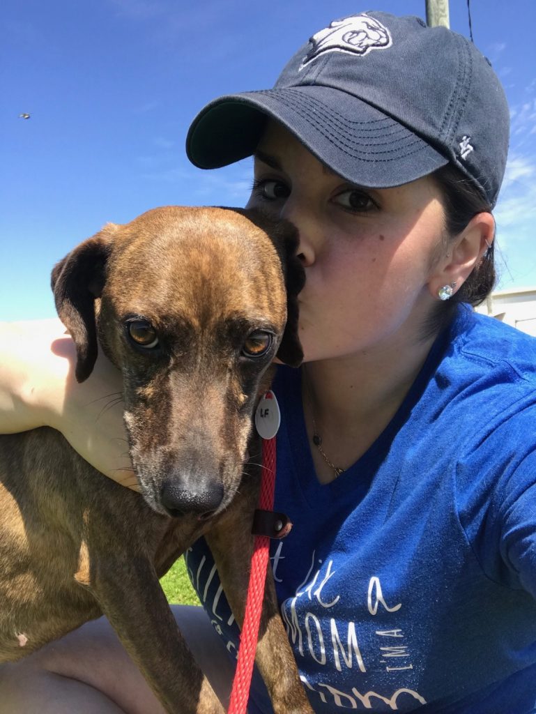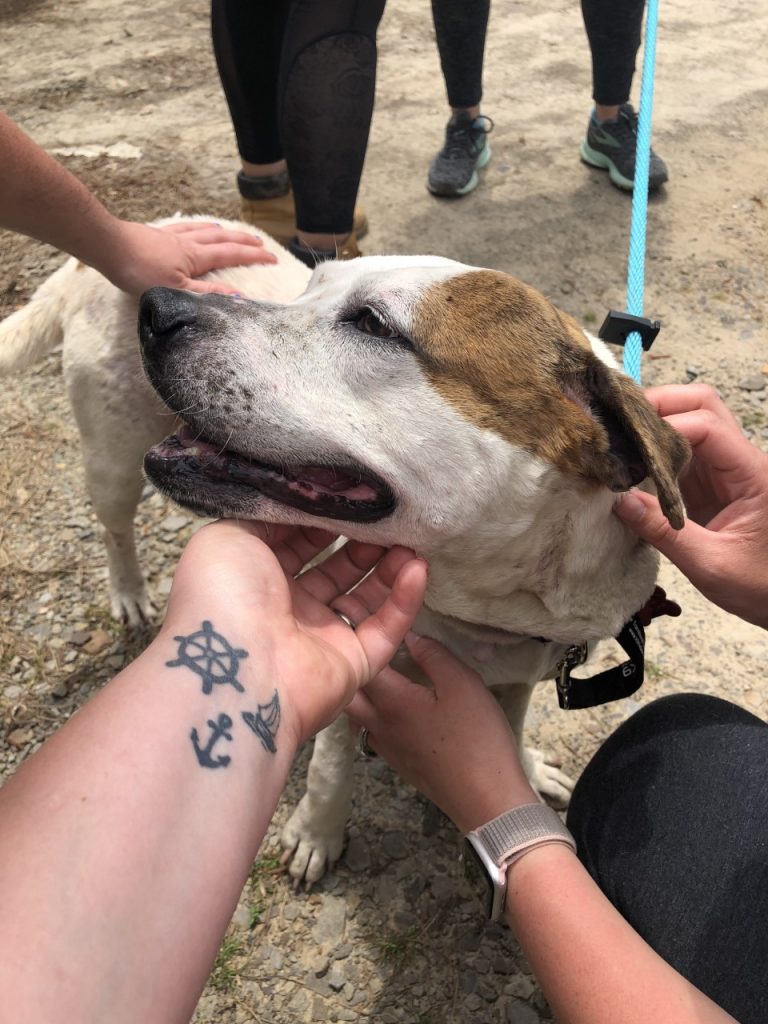 Towards the end of the day, we spent time with as many dogs as we possibly could. As a lover of all things small, I was immediately drawn to a Chihuahua mix named Oscar. Oscar wasn’t afraid of anything and confidently marched around the yard on his leash. After spending some time with him, I put him back in his kennel and visited with another dog that pulled at my heart strings, Sister. Sister is about as a sweet as they come and was so happy to receive extra affection and belly scratches. This girl is heartworm positive – a completely preventable disease that she got due to human neglect – and recently received her third injection to rid her body of these nasty parasites. This girl completely stole my heart and I hope that she will be able to travel to Boston once she kicks those nasty worms and is ready to be adopted.