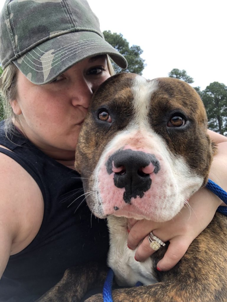 Then there was Mama. Mama was medium white and brown pittie mix that has clearly been used for an extensive breeding operation. Her fur was patchy, skin was red and raw, her nipples so overly used and infected that they hung to the floor. Now, I had witnessed neglected and abused dogs during this trip, but Mama’s case was by far the worst. Her teeth were brown and ground down, ears were piled up with dirt and filth. This is the reality of dog breeding. It’s likely that Mama had never seen the sun or felt the grass on her feet before she was dumped at the shelter when she was no longer of any use to her “owners”. After testing her with other dogs, we knew there wasn’t anything we would be able to do for her and with her medical and dog-related behavioral issues, rescuing her just wouldn’t be an option. The right thing to do in this particular case was to stop her suffering by euthanasia, unfortunately. A few of our volunteers decided that even though we couldn’t save her, we could give her the best day of what was likely a lonely, miserable life. Mama got a new name, Soft Taco. She also got to eat her heart out with roast beef sandwiches, spaghetti and meatballs, and even ice cream. She got to enter a house for likely the first time ever, sleep in a comfy bed, and took turns snuggling with each of the volunteers. While saying goodbye to Soft Taco was hard, it would have been harder to let her deteriorate and suffer in a shelter.