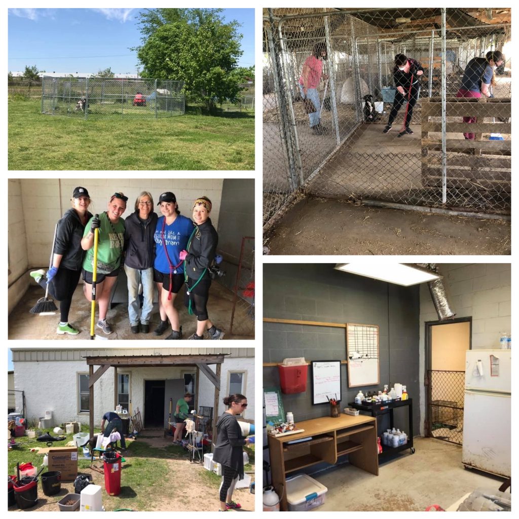 Upon arrival, I leapt out of our van to meet Ann and Rita in front of the shelter. I gave them the biggest hugs and we walked inside to meet the rest of the volunteers waiting in the back of the shelter. As I entered the building through the front office and down the rows of dogs in kennels, I was overwhelmed. There were so many dogs here. Between the front building and barn out back there are approximately 70 dogs that reside at Jackson County. I gave them a smile as we walked through the row of kennels and out to the back where I was greeted by nine of the most adorable terrier pups I have ever seen. Our group went over the projects for the day and divided into smaller groups to tackle our assigned tasks.