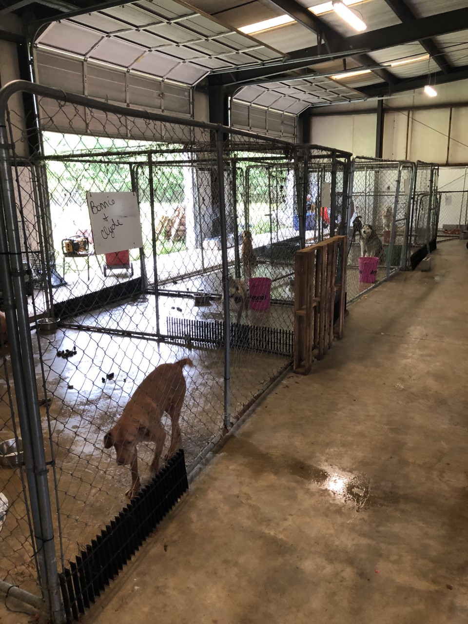 After getting our assignments, I entered the building and was stunned by what I saw. 10-12 dogs in large, makeshift kennels made out of chainlink fencing with sharp wiring or bungee cords used to keep the “doors” shut. The kennels that were shorter in height had large wood pieces placed on top to keep the dogs from jumping out. Now, I think its important to note that Last Hope K9 has pledged funds to this shelter specifically to have a professional come out and build safe, actual kennels where these dogs can reside.